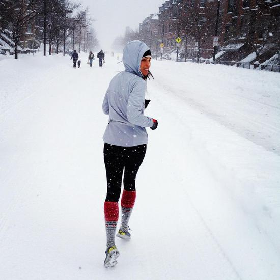 跑者们穿着紧身衣,在寒冷大风的天气可以避免冷风直接冲击到皮肤表面。