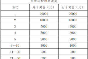 3.全马名次奖与全马共青城籍名次奖只领取奖金金额最高的其中一项,不重复领取。