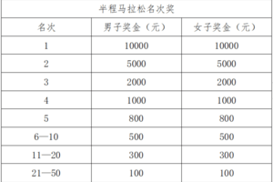 3.半程马拉松名次奖: